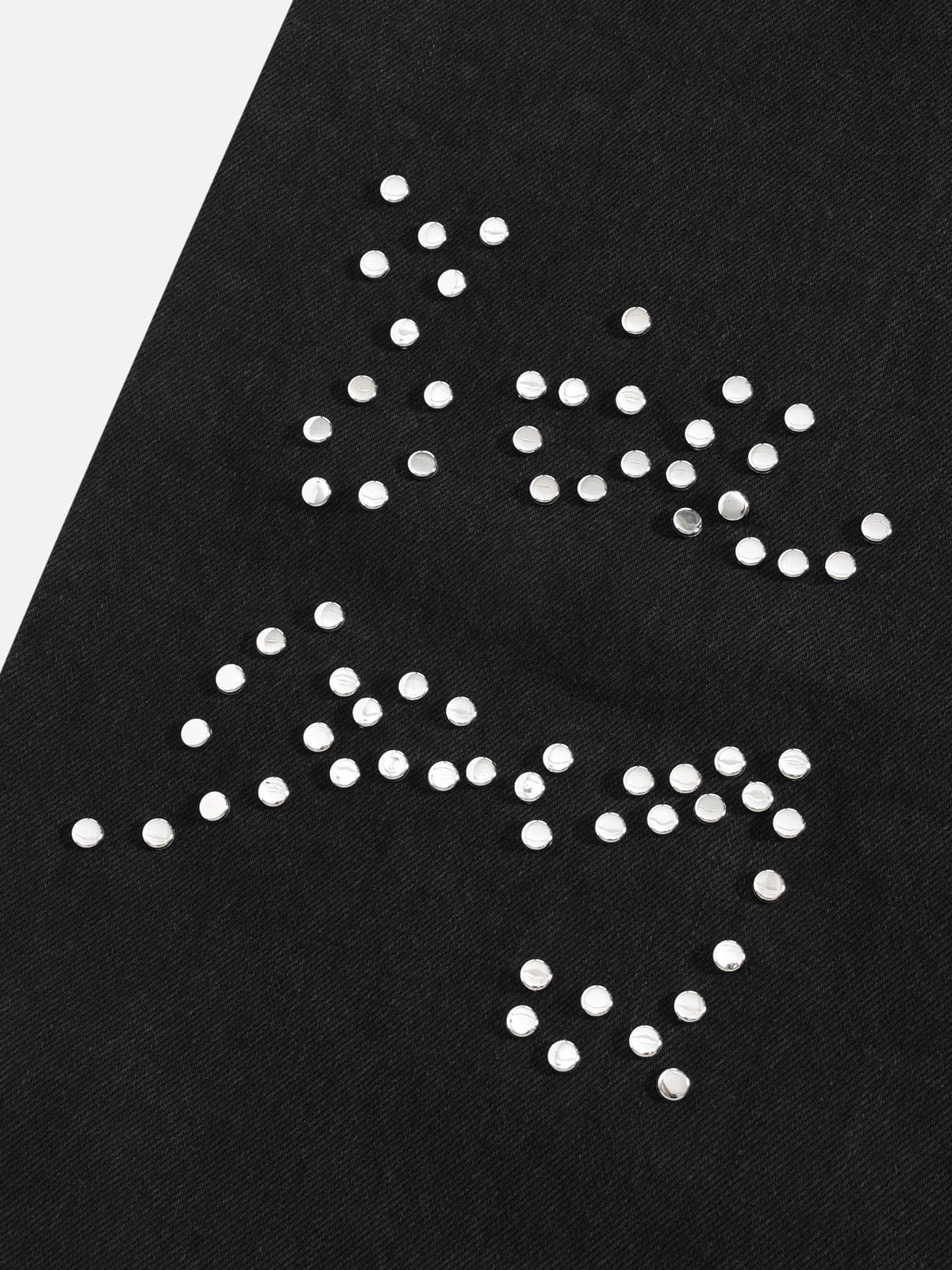 A pair of baggy jeans built for bold street energy, featuring a leopard-print patch layout and scattered rhinestone hits that catch light with every move. The oversized silhouette keeps the fit relaxed and easy, while the mixed textures add a punch of attitude that stands out without trying.