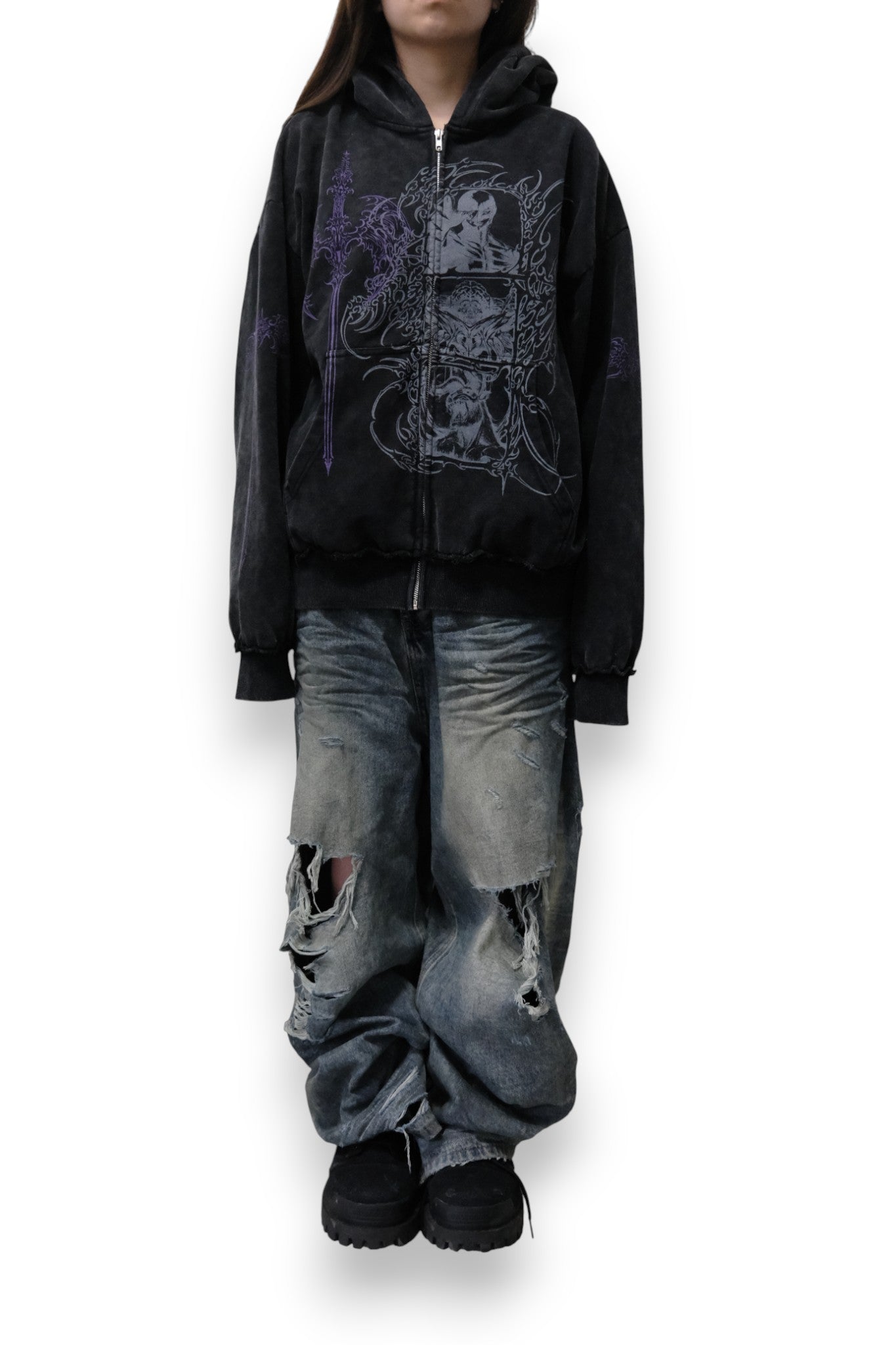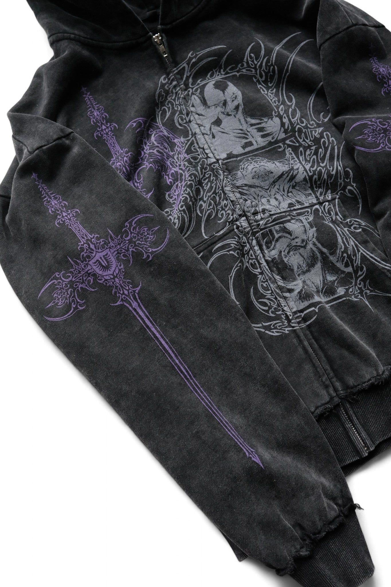 -DISTRESSING ON CUFFS AND HEM
