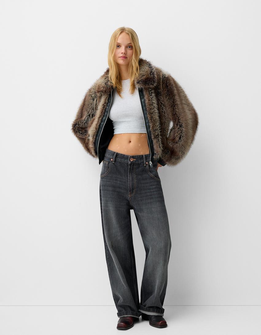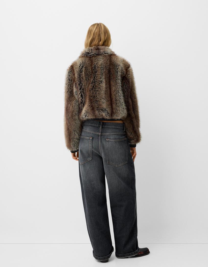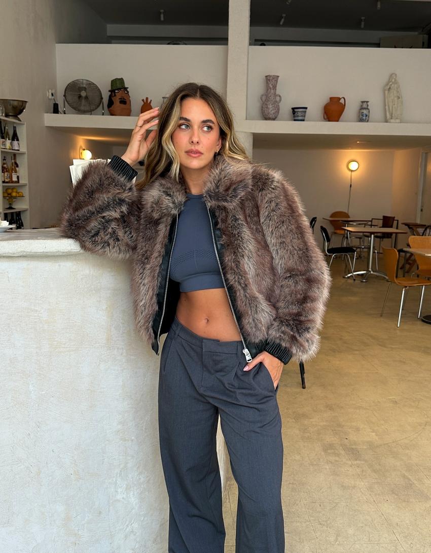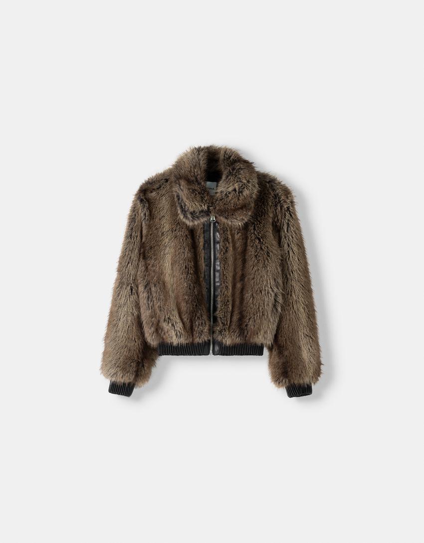Faux Fur Jacket with Leather Effect – LOUVELLI