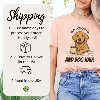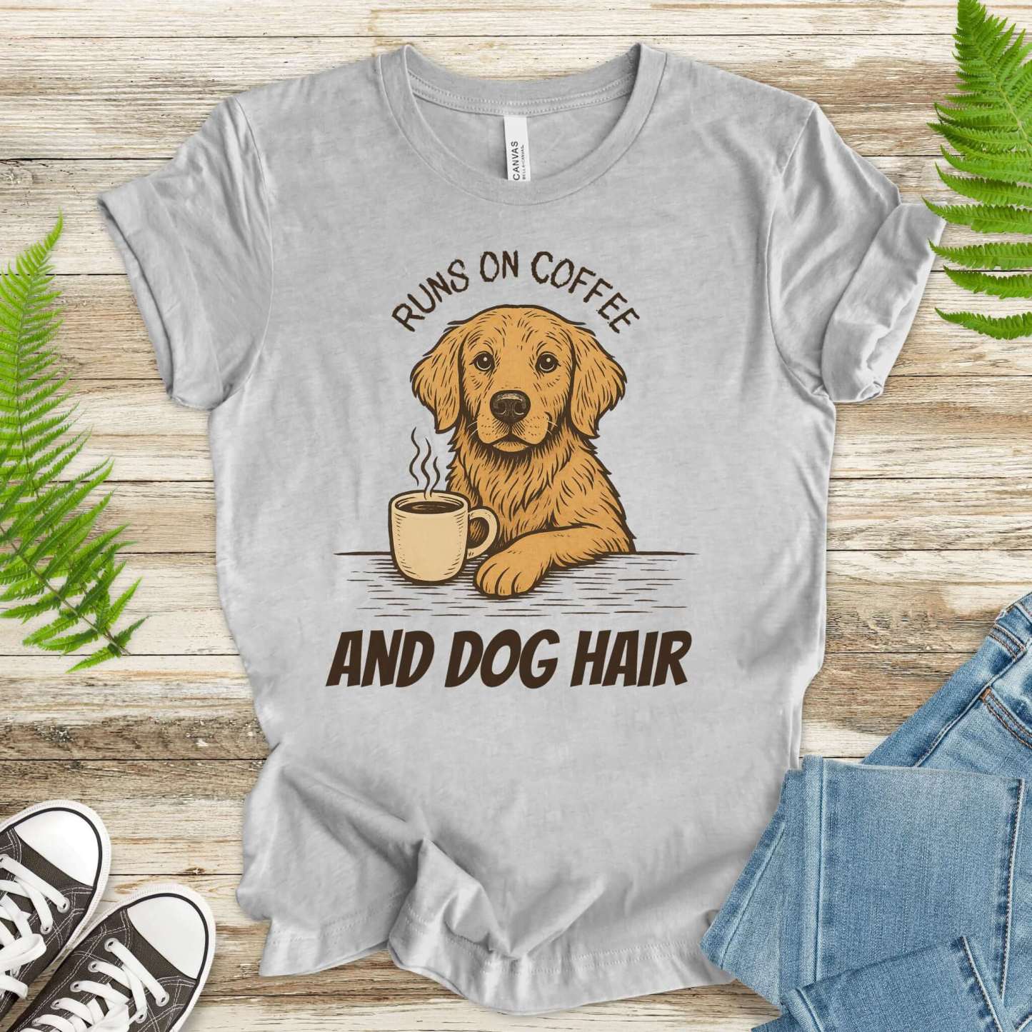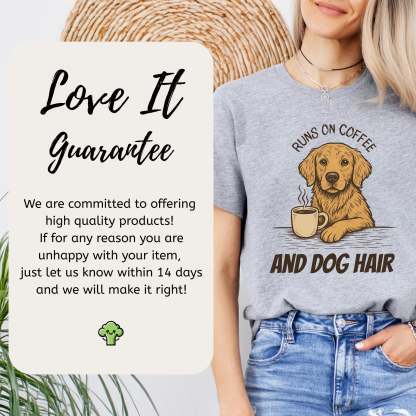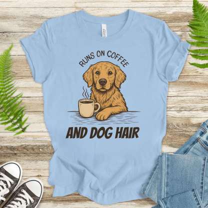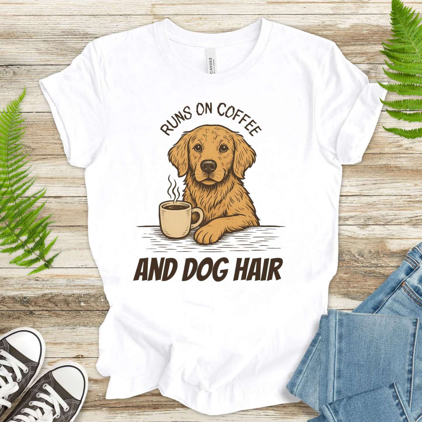Start your day smiling with our Coffee-Loving Golden Retriever T-Shirt! Featuring an adorable golden retriever paired with a cup of coffee, this tee perfectly captures the heart (and humor) of every coffee-drinking dog mom or dad. Ideal for golden retriever enthusiasts, caffeine lovers, or anyone who believes mornings are always better with dogs and coffee.