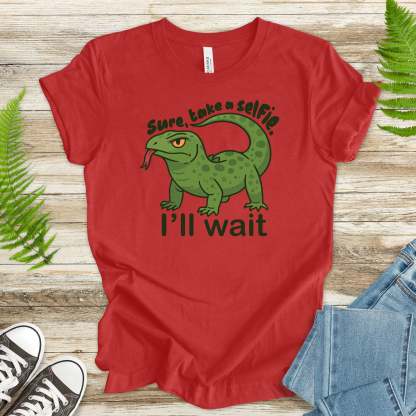 Lizard Selfie Wait T-Shirt – Funny Komodo Dragon Reptile Lover Tee