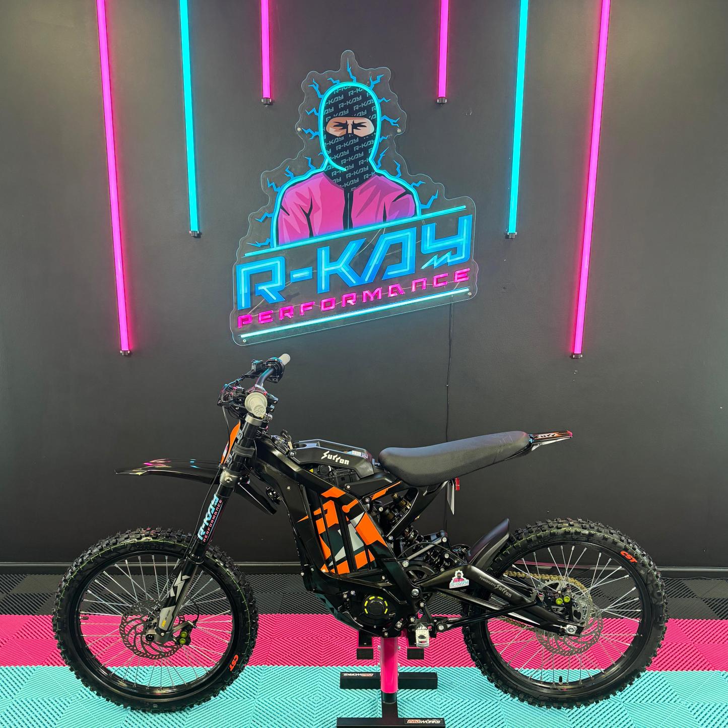 At R-Kay Performance, we're thrilled to offer the brand new Surron Light Bee X, a CE-approved UK-spec model. It's finished in the popular black with eye-catching orange stickers. With the latest 60v 40Ah Samsung Cell Battery, it delivers improved power and range, reaching speeds of up to 50mph. Plus, it comes with full 18 months warranty! It's an incredible package! 🎯