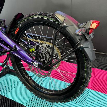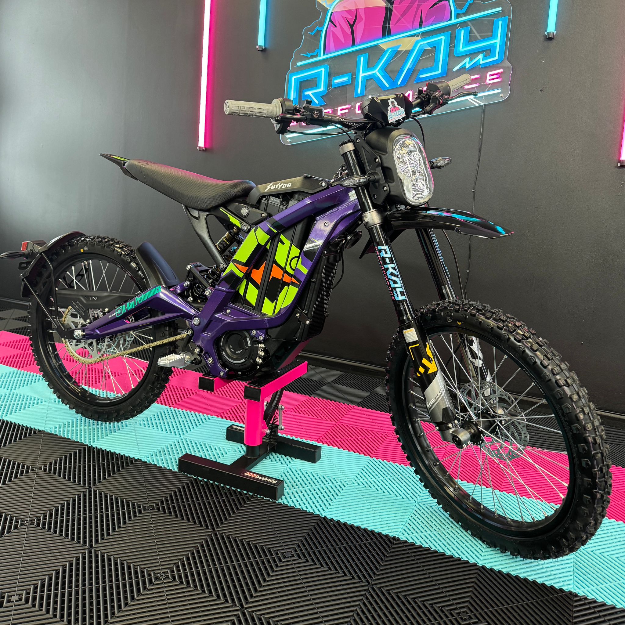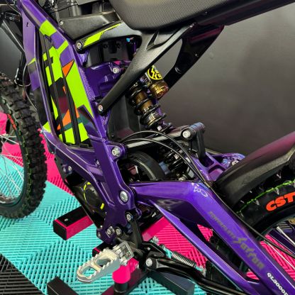 At R-Kay Performance, we're thrilled to offer the brand new Surron Light Bee X, a CE-approved UK-spec model. It's finished in Phantom Purple with eye-catching Green OEM stickers. With the latest 60v 40Ah Samsung Cell Battery, it delivers improved power and range, reaching speeds of up to 50mph. Plus, it comes with full 18 months warranty! It's an incredible package! 🎯