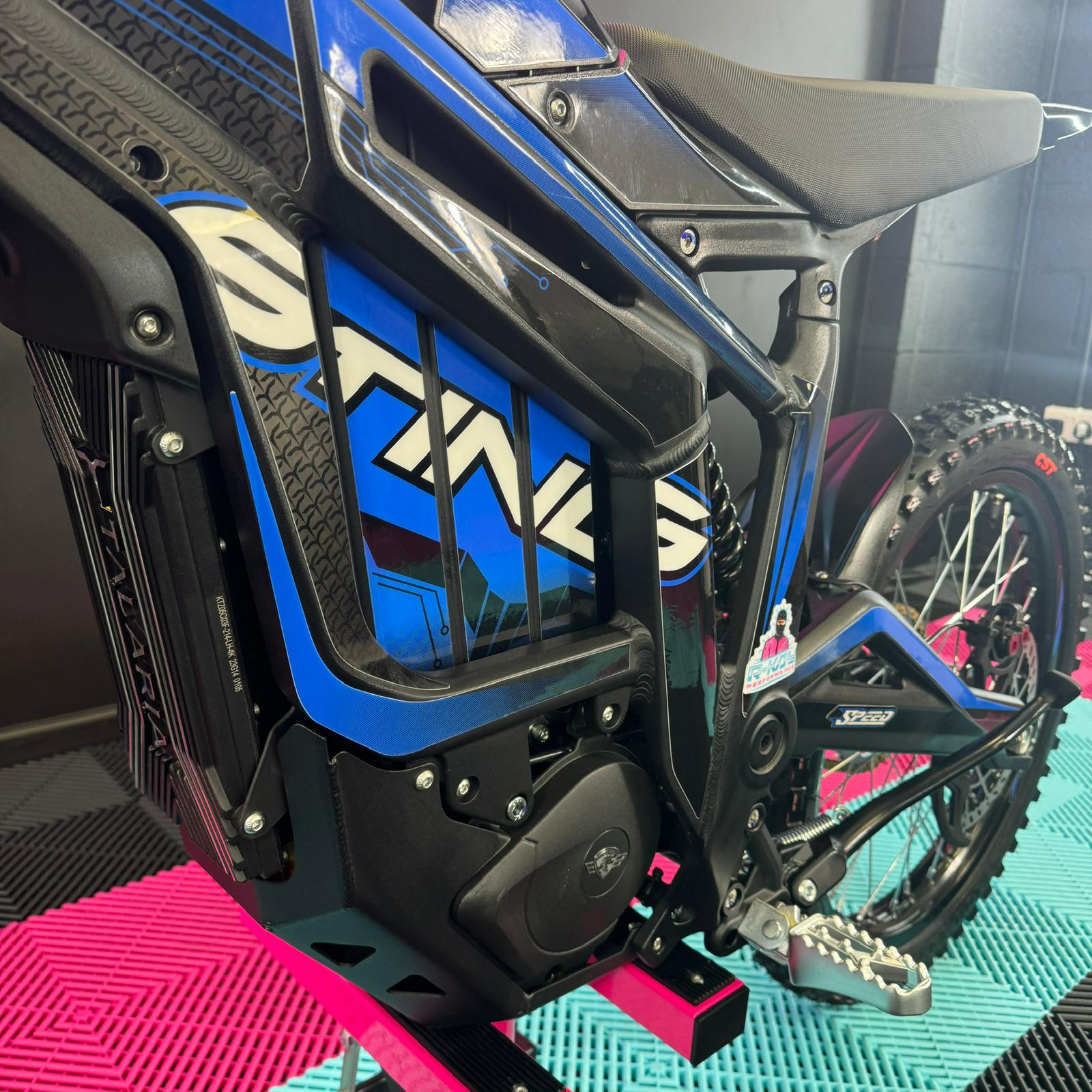 As an authorised Talaria dealer, we are thrilled to offer the Talaria Sting R, also known as the Surron killer. This impressive Talaria features a sleek Black Frame With Blue Stickers. With its powerful 60V 45Ah battery, it boasts a remarkable 8kW capability and a range of up to 52 miles. Not only that, but it also comes with updated features such as an extended rear fender, larger brake disks, and improved suspension. Don't miss out on this incredible Talaria Sting R! 🥇