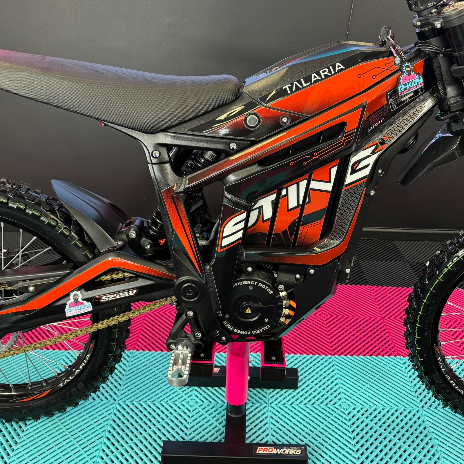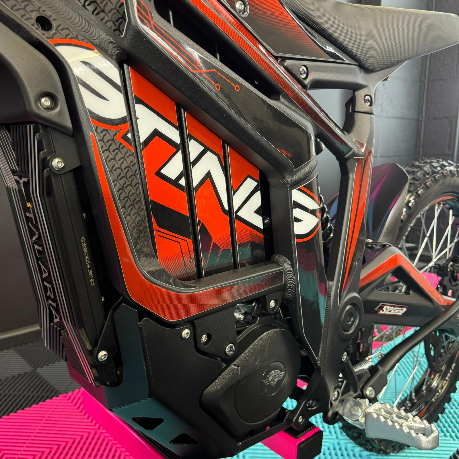As an authorised Talaria dealer, we are thrilled to offer the Talaria Sting R, also known as the Surron killer. This impressive Talaria features a sleek Black frame and Red Stickers. With its powerful 60V 45Ah battery, it boasts a remarkable 8kW capability and a range of up to 52 miles. Not only that, but it also comes with updated features such as an extended rear fender, larger brake disks, and improved suspension. Don't miss out on this incredible Talaria Sting R! 🥇
