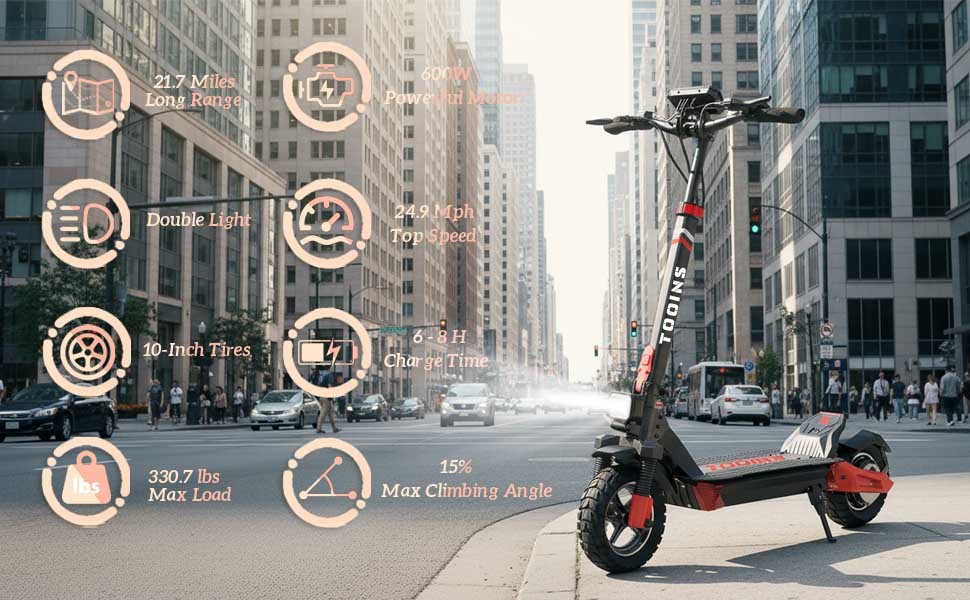 TOOINS X1 Electric Scooter | 600W Motor | 48V 10.4Ah Battery | 25MPH Speed & 22-Mile Range | Aerospace Aluminum Frame