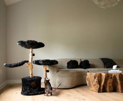 Want a unique cat tree that beautifies your home while giving your cat a place to rest? The KBSPETS Team is pleased to introduce you to our new Monochrome Collection! Featuring our Teddy Blanc + Teddy Noir, this collection introduces a new level of splendor to our luxury cat furniture. These products will turn your home into a piece of art. This modern floral design is hand-made with real natural wood branches, two teddy blanc-designed flower cat beds, and one leaf design perch. It has an enclosed, private condo on the ground floor and two dangly pom-pom toys attached for playtime fun. ***All of our cat beds are the BIGGEST on the market, offering spacious and comfortable amenities for even the most particular felines.